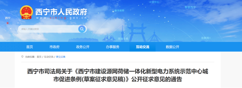 6月27日,青海西寧市司法局發(fā)布關(guān)于《西寧市建設(shè)源網(wǎng)荷儲(chǔ)一體化新型電力系統(tǒng)示范中心城市促進(jìn)條例(草案征求意見(jiàn)稿)》公開(kāi)征求意見(jiàn)的通告。