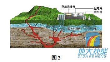 1)熱干巖過程法.與那些只從火山活動頻繁地區(qū)的溫泉中提取熱能的方法相比,熱干巖過程法將不受地理?xiàng)l件限制,可以在任何地方進(jìn)行熱能開采.首先將水通過壓力泵壓入地下4~6 km深處,此處巖石層的溫度大約在200℃左右.水在高溫巖石層被加熱后,通過管道加壓被提取到地面并輸入到熱交換器中,熱交換器推動汽輪發(fā)電機(jī)將熱能轉(zhuǎn)化成電能.同時推動汽輪機(jī)工作的熱水經(jīng)冷卻后可重新輸入地下供循環(huán)使用.這種地?zé)岚l(fā)電的成本與其他再生能源的發(fā)電成本相比是有競爭力的,而且這種方法在發(fā)電過程中不產(chǎn)生廢水、廢氣等污染,所以它是一種未來的新能源.