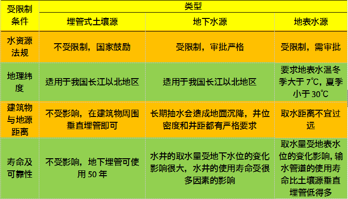 地大熱能專家介紹:地源熱泵空調(diào)系統(tǒng)的設(shè)計(jì),主要包括兩大部分:一是建筑物內(nèi)的水環(huán)路空調(diào)系統(tǒng)的設(shè)計(jì);二是地源熱泵空調(diào)系統(tǒng)的地下部分的設(shè)計(jì),即地下耦合熱泵系統(tǒng)的地下熱交換器、地表水熱泵系統(tǒng)的地表水熱交換器,地下水熱泵系統(tǒng)的水井系統(tǒng)設(shè)計(jì)。下面我們對(duì)三種地源熱泵系統(tǒng)形式進(jìn)行對(duì)比分析,如表1所示。