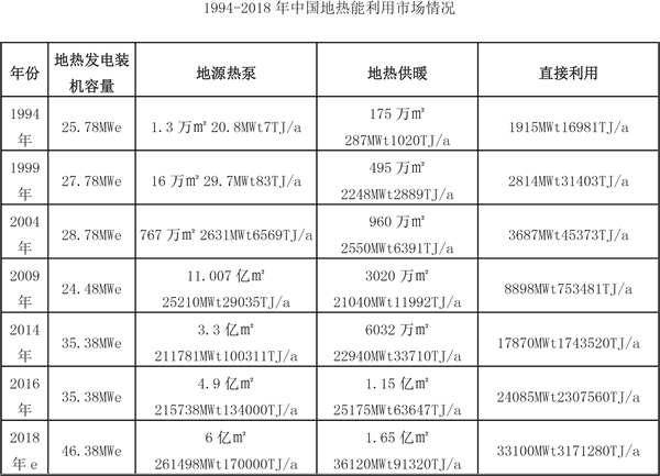 截止2018年年底,中國地區(qū)地熱發(fā)電累計裝機約46.38MWe。