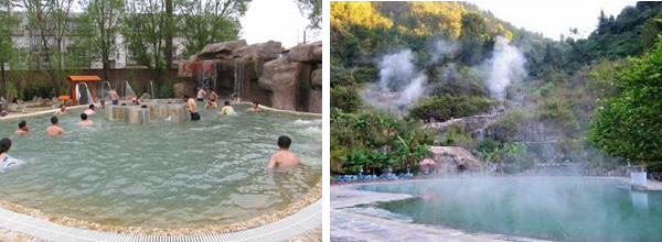 熱水溫泉地處老圖山脈東緣山麓,分布面積為0.42平公里,日最大可采儲量1800~2100噸,中心孔深503米,自流水溫高達當(dāng)?shù)胤悬c97℃,是全國水溫最高的溫泉之一。泉水中含有碳酸氯鈉、硫化氫、二氧化硅、氡、氟、碘、硼、銅、銀、鉀、鈦、鈄、鎂、鋰、鈣等卜幾種化學(xué)物質(zhì)及微量元素,對神經(jīng)衰弱、高血壓、糖尿病、皮膚病、胃病、布氏桿菌癇、多發(fā)性神經(jīng)炎、增生性脊柱炎、氣管炎等30多種常見疾病有很好的療效和較強的保健作用。
