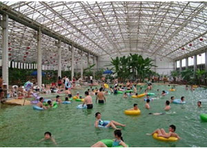 | 江蘇省洪澤縣老子山溫泉風景 溫泉陽光浴場展示出亮麗的南國風情,分布大型泳池和品類各異的水療、魚療、花藥浴、泥巴浴,不僅具有神奇的理療保健作用,還兼?zhèn)渑哦攫B(yǎng)顏、美白肌膚、調理身心等多重功效,享有蘇北熱海、澤國仙境、華東首席溫泉度假區(qū)之美譽。