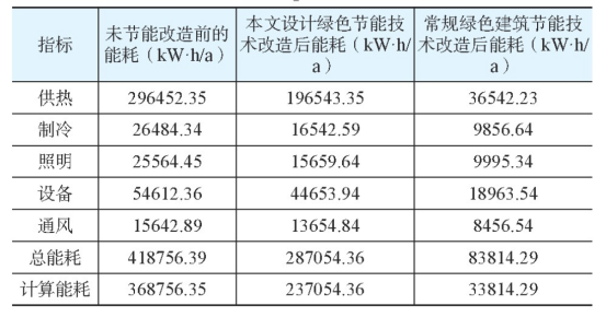 分別使用本文設計的被動式低能耗綠色建筑節(jié)能技術和基于專家評分的常規(guī)綠色節(jié)能技術改造,改造后能耗對比結果如表1所示。