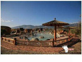 | 云南下關(guān)溫泉風(fēng)景明童軒《德勝關(guān)溫泉》詩(shī)云:蒸蒸本元?dú)?,澡雪人?zhēng)浴。雖無(wú)澤物功,遠(yuǎn)勝貪泉屈。大理下關(guān)溫泉在山谷之中,背依附者摩山,峭石噻巖壁立,面臨大理西洱河岸,河水洶涌奔騰;庭院之中,設(shè)有大理亭閣游廊,遍植花木,四季花香,環(huán)境幽雅,景色宜人,下關(guān)溫泉是人們休假療養(yǎng)的場(chǎng)所。